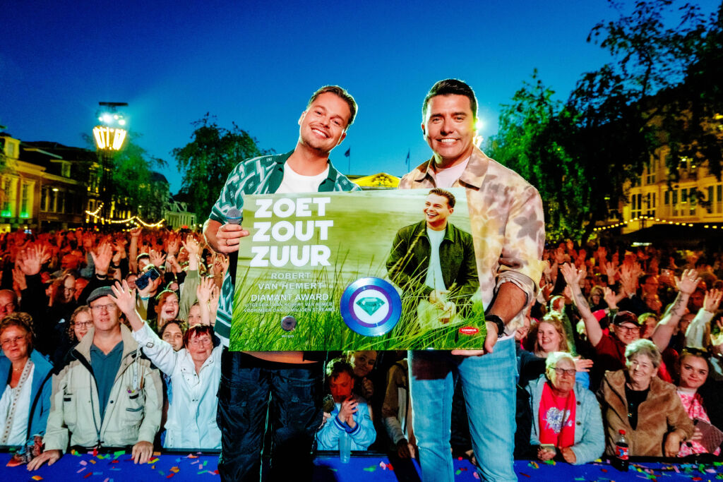 Robert van Hemert heeft een bijzondere mijlpaal bereikt in zijn carrière. Zijn single Zoet, Zout, Zuur is inmiddels meer dan 50 miljoen keer gestreamd en dat succes is nu bekroond met een officiële Diamanten Award. Niemand minder dan Jan Smit overhandigde Robert de prestigieuze onderscheiding.